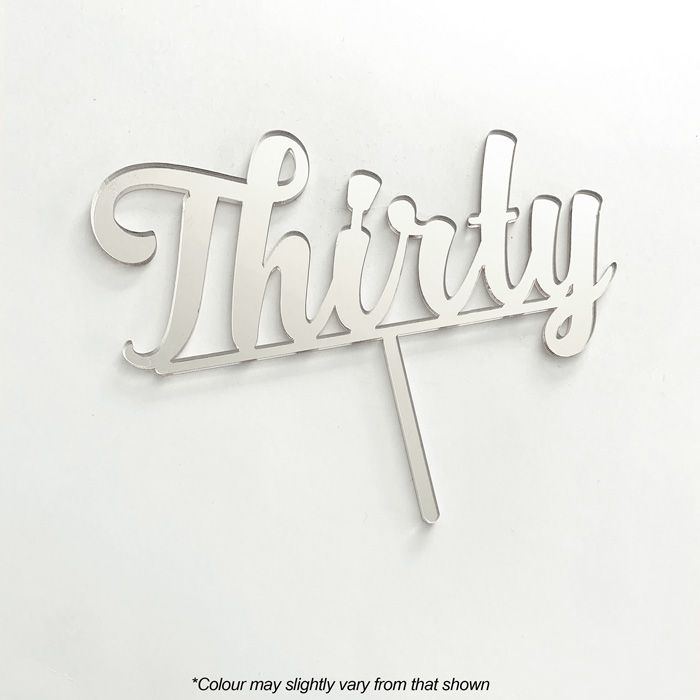 NUMBER THIRTY SILVER MIRROR ACRYLIC CAKE TOPPER