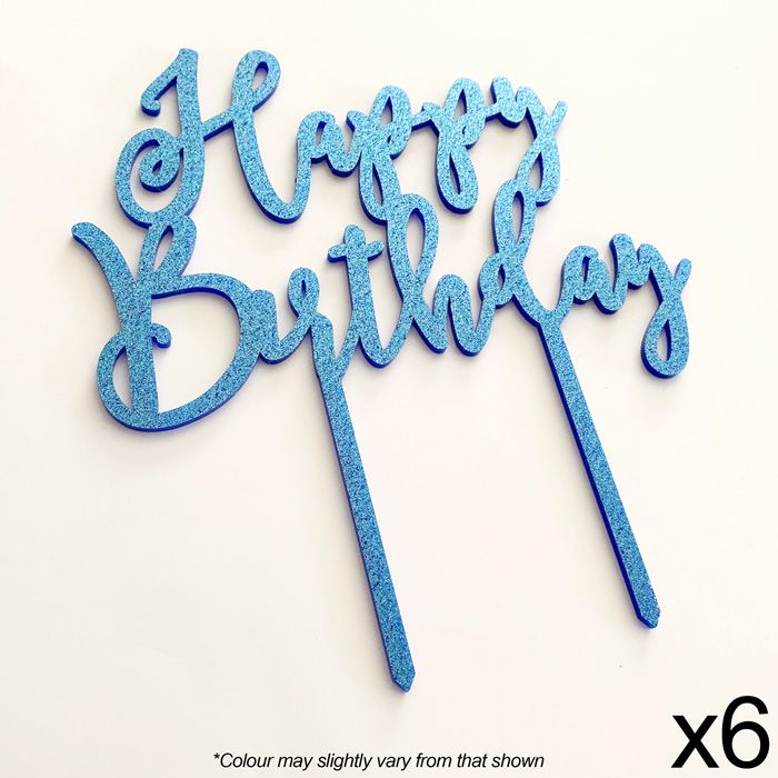 CAKE CRAFT | 6 PACK | HAPPY BIRTHDAY | BLUE GLITTER | ACRYLIC TOPPER
