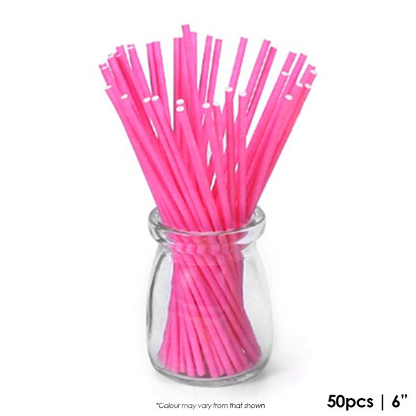 CAKE CRAFT | 6 INCH LOLLIPOP STICKS | BRIGHT PINK | PACK OF 50