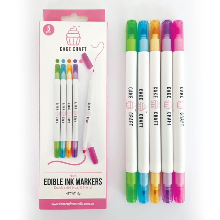 CAKE CRAFT | EDIBLE INK MARKERS | NEON COLOURS | 5 PACK