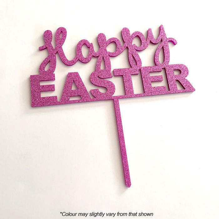 HAPPY EASTER PINK GLITTER ACRYLIC CAKE TOPPER