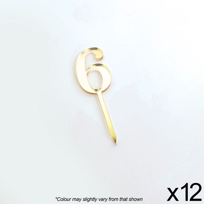 CAKE CRAFT | #6 | 3.5CM | GOLD MIRROR | ACRYLIC CUPCAKE TOPPER | 12 PACK