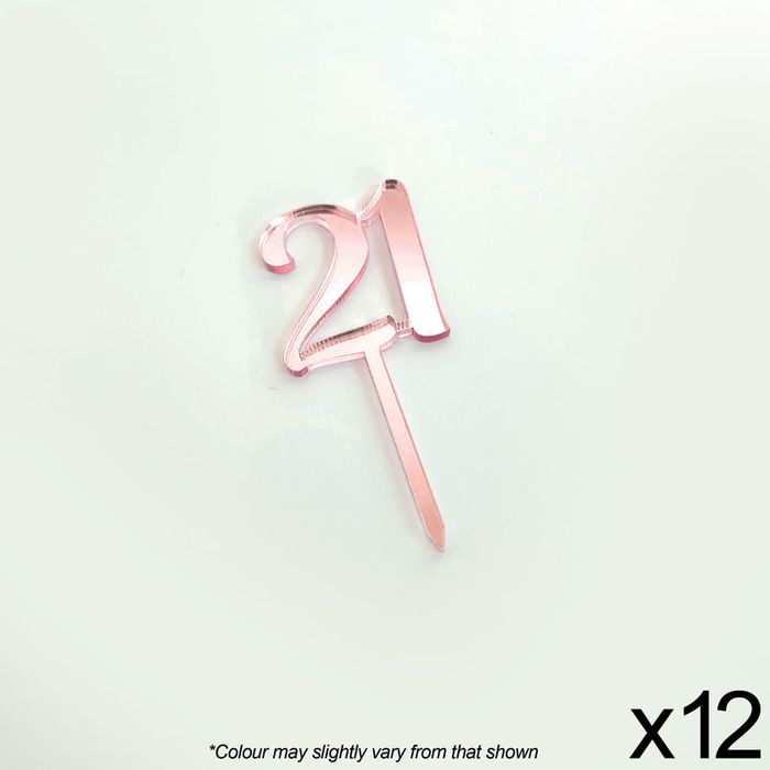 CAKE CRAFT | #21 | 3.5CM | ROSE GOLD MIRROR | ACRYLIC CUPCAKE TOPPER | 12 PACK