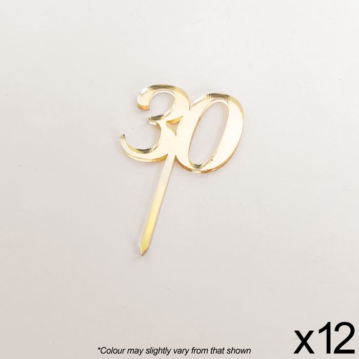 CAKE CRAFT | #30 | 3.5CM | GOLD MIRROR | ACRYLIC CUPCAKE TOPPER | 12 PACK