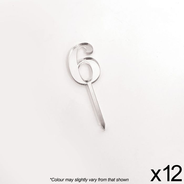 CAKE CRAFT | #6 | 3.5CM | SILVER MIRROR | ACRYLIC CUPCAKE TOPPER | 12 PACK