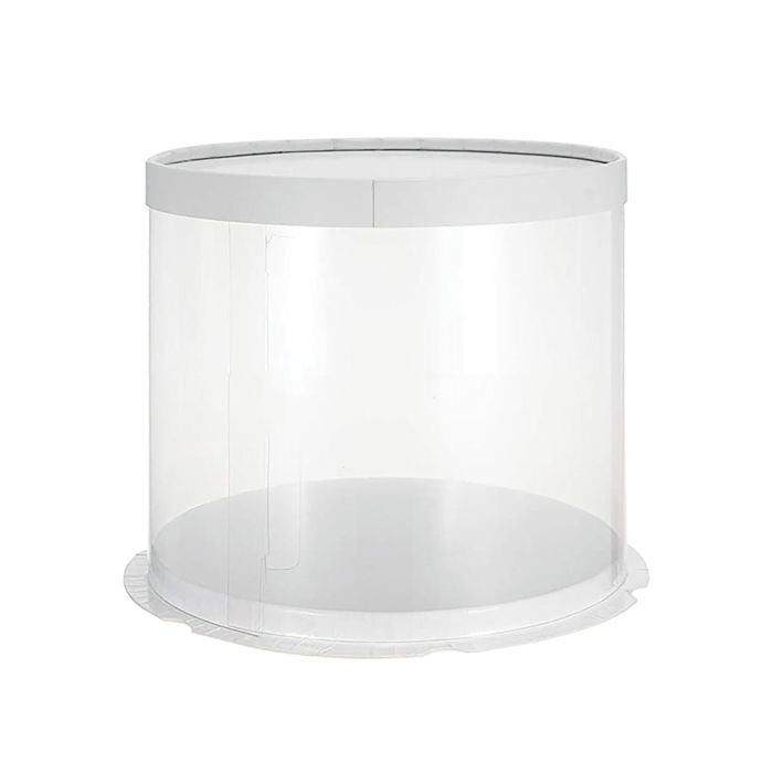 CLEAR TUBE CAKE BOX | 8X8X8 INCH | WHITE LID & BASE