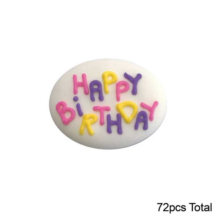 HAPPY BIRTHDAY PLACARDS PINK | SUGAR DECORATIONS | BOX OF 72