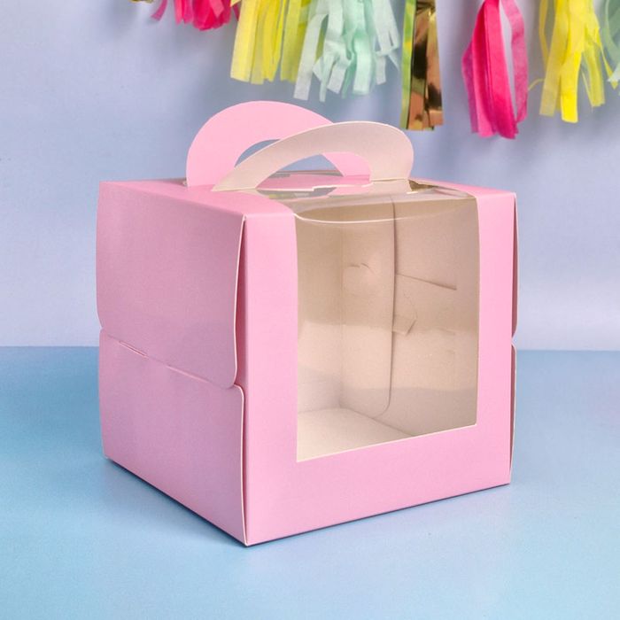 CAKE CRAFT | PINK | 6.2X6.2X5.9 INCH | TOP HANDLE WINDOW CAKE BOX | RETAIL PACK