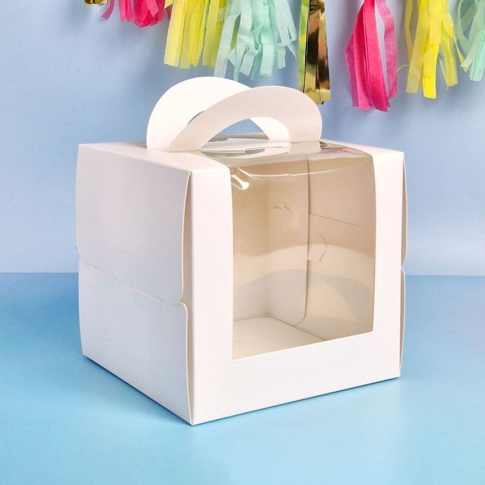 CAKE CRAFT | WHITE | 6.2X6.2X5.9 INCH | TOP HANDLE WINDOW CAKE BOX | RETAIL PACK