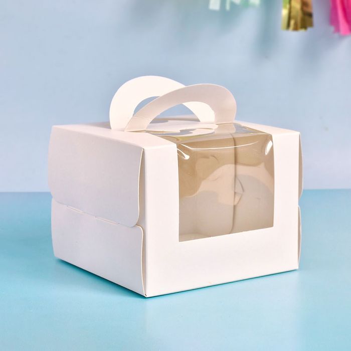 CAKE CRAFT | WHITE | 5.3X5.3X4 INCH | TOP HANDLE WINDOW CAKE BOX | RETAIL PACK