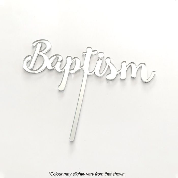 BAPTISM SILVER MIRROR ACRYLIC CAKE TOPPER