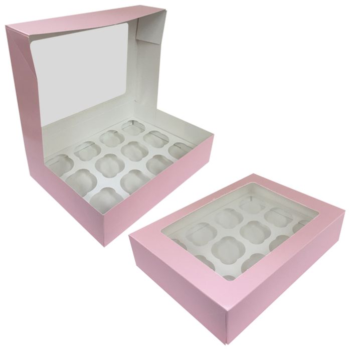 BULK 50 PACK | DISPLAY CUPCAKE BOX | 12 HOLES | PINK | UNCOATED CARDBOARD