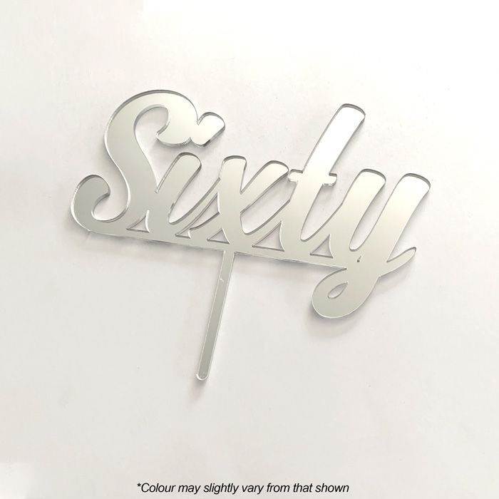 NUMBER SIXTY SILVER MIRROR ACRYLIC CAKE TOPPER