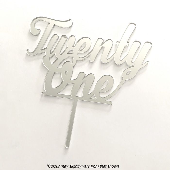 NUMBER TWENTY ONE SILVER MIRROR ACRYLIC CAKE TOPPER